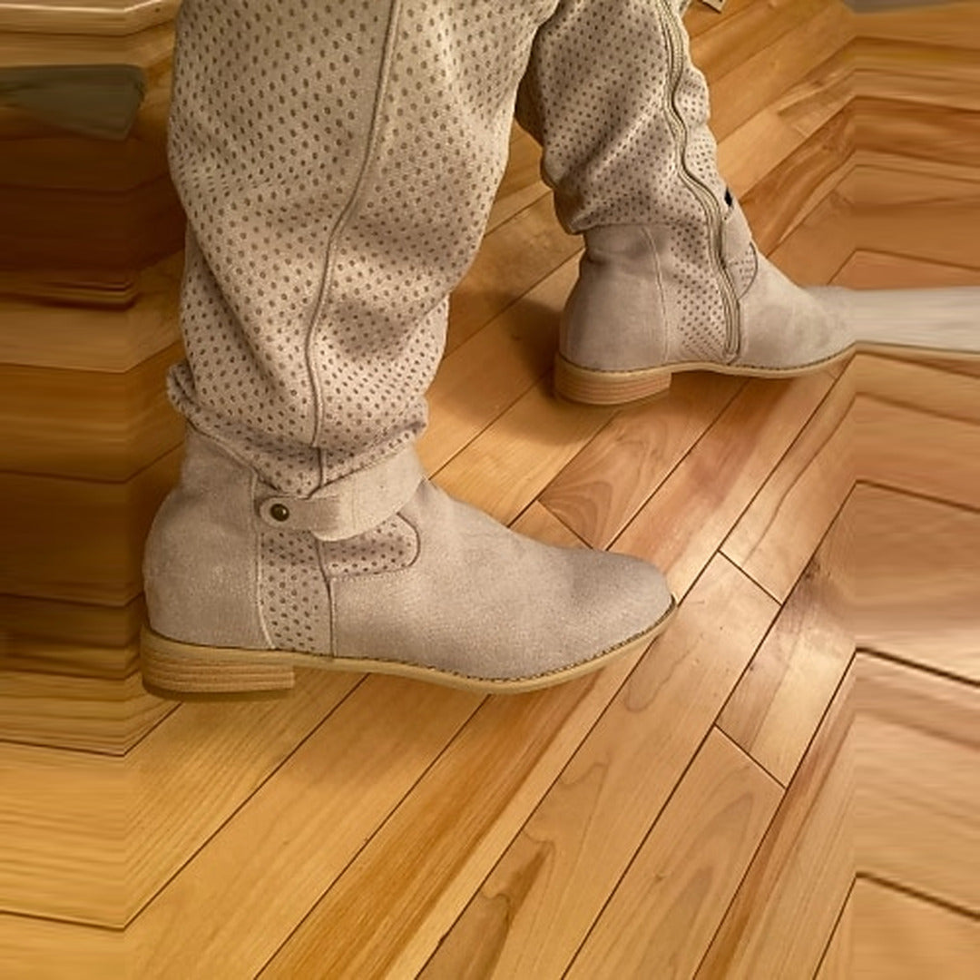 con il suo tacco basso e il suo tessuto morbido, questo stivale è perfetto per tutti i giorni, ma anche per un outfit più elegante